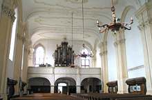The current appearance of the inside of the church is the result of numerous changes done in time. Close to the entrance there is a balcony supported by arches on posts. The slightly curved ceiling, reinforced by four pairs of double arches and decorated with stucco, is the result of remodeling works performed in 1790 by Anton Türk, one of the most famous Transylvanian architects of the Baroque period.
